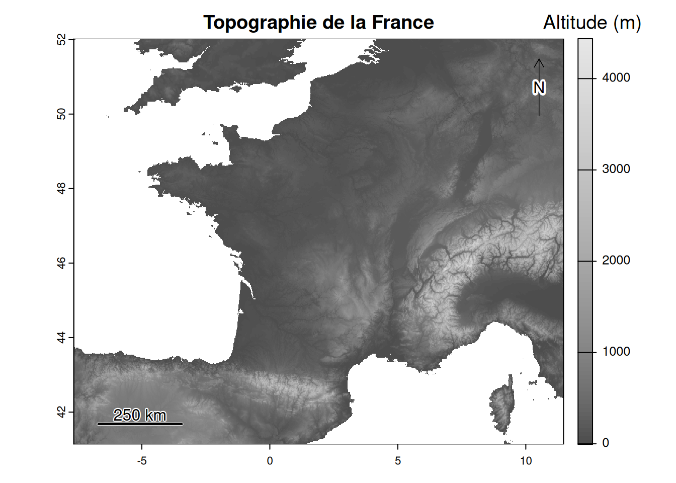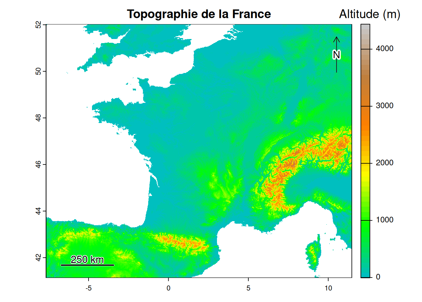 main='Topographie de la France', # titre de la carte