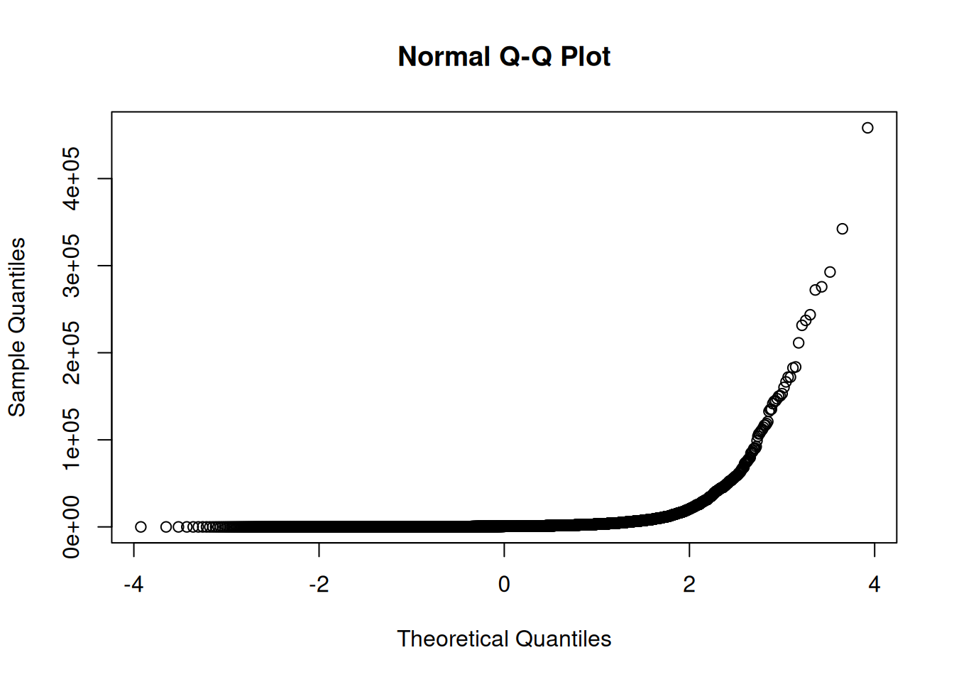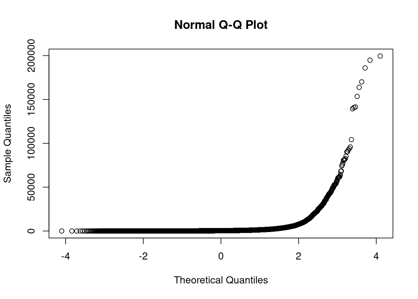 # graphique du QQ plot des populations des communes non traversées par un cours d'eau